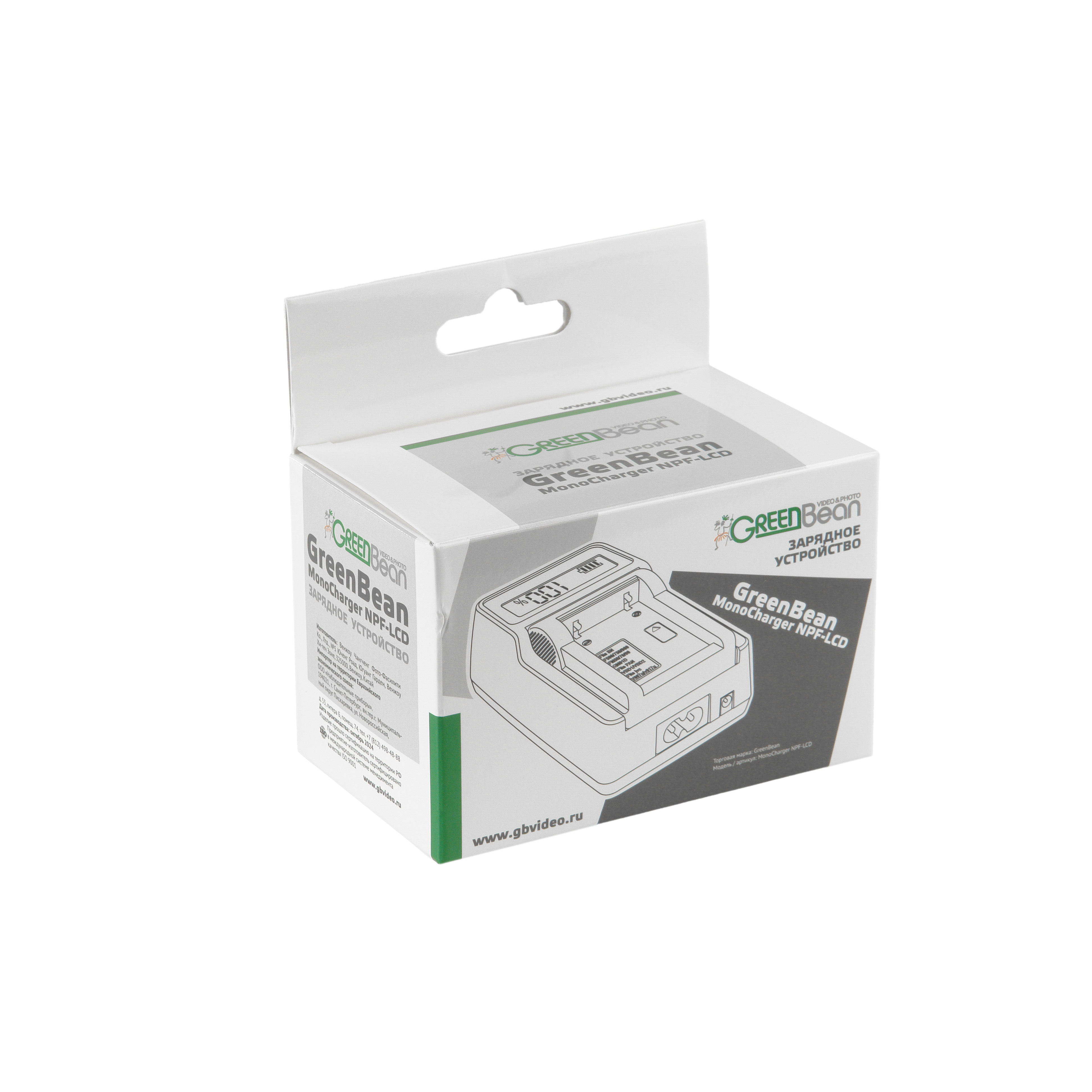 Зарядное устройство GreenBean MonoCharger NPF-LCD предназначено для зарядки литий-ионных аккумуляторов стандарта Sony NP-F с номинальным напряжением 8.4 В. Устройство совместимо с батареями данной платформы независимо от их емкости. GreenBean MonoCharger NPF-LCD оснащено одним зарядным слотом со сменной панелью, адаптированной под форм-фактор NP-F. На корпусе присутствует дополнительный USB-порт типа A (гнездо). Устройство оснащено LCD-дисплеем для отображения режима работы, текущего состояния и прогресса зарядки аккумулятора. Процессор управления (MCU) автоматически идентифицирует подключенный аккумулятор и определяет его параметры.