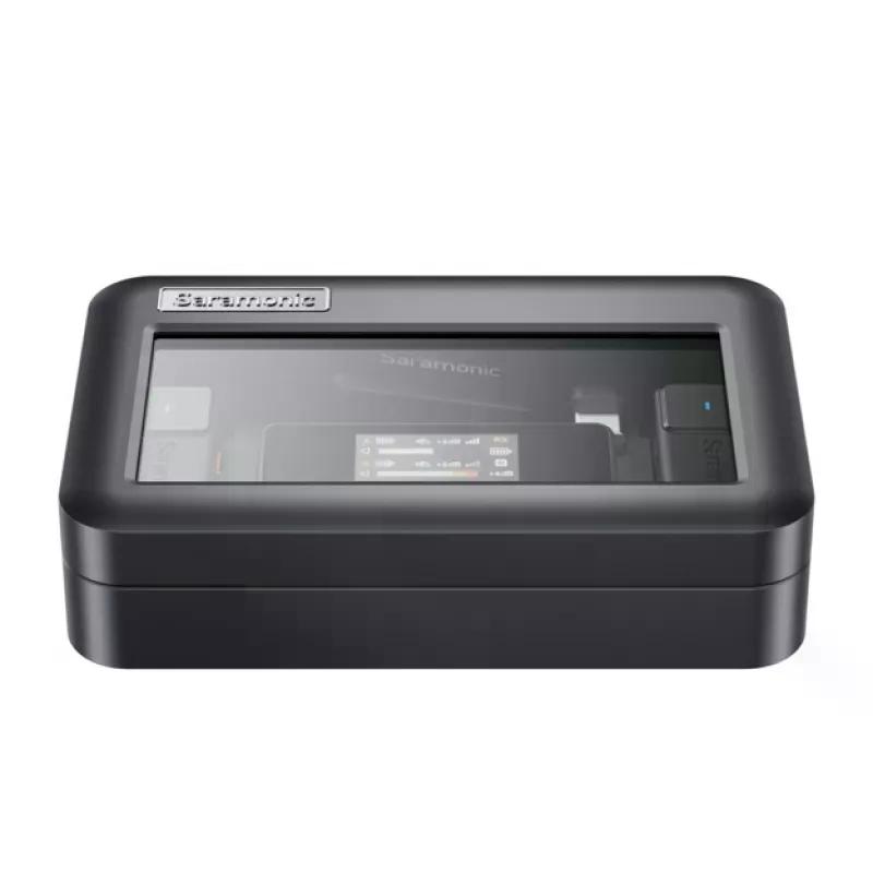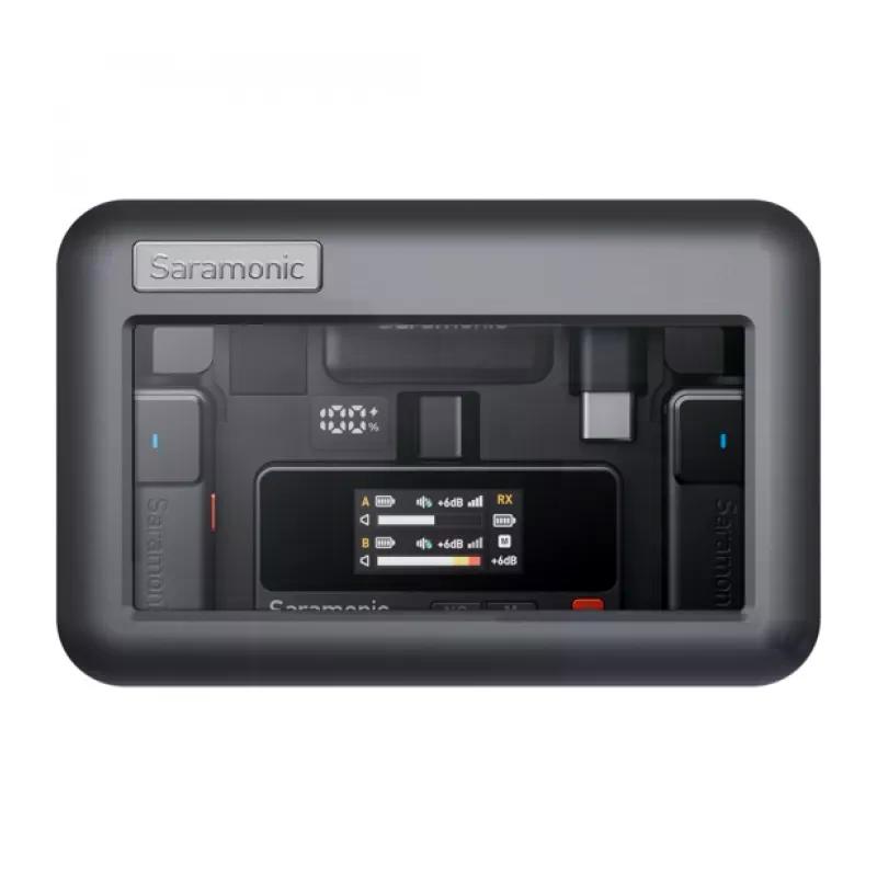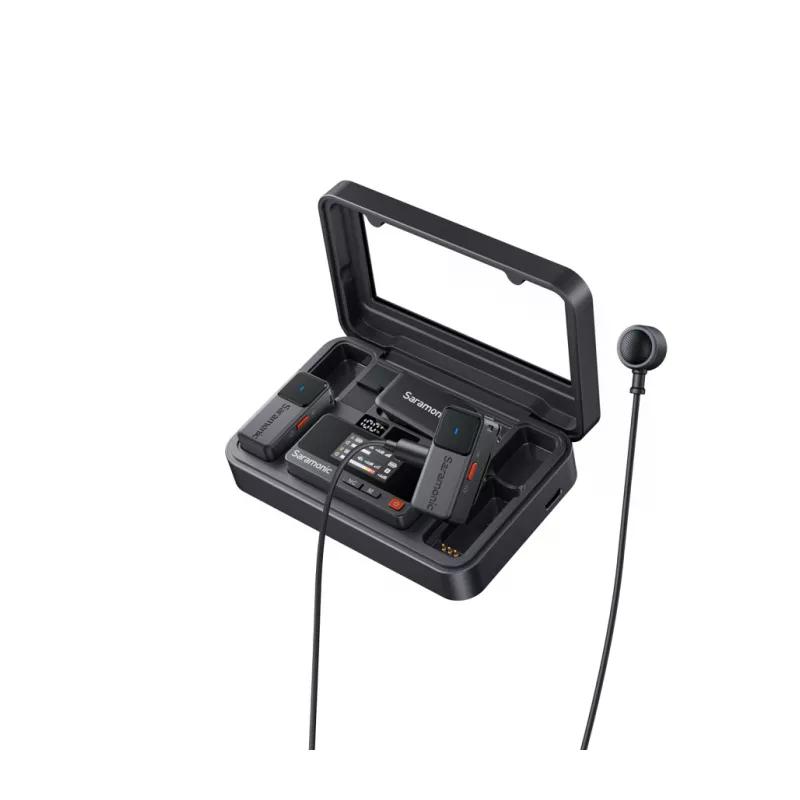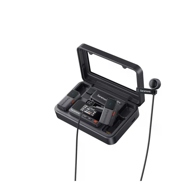 Система комплектуется петличными микрофонами диаметром 9,7 мм с диафрагмой 6 мм. Приемник работает до 6,5 часов с включенным дисплеем. Приемник и передатчики заряжаются через порт USB-C. В комплекте есть жесткий кейс со встроенной батареей для дополнительной зарядки системы на 150%, обеспечивая общее время работы около 15 часов.
