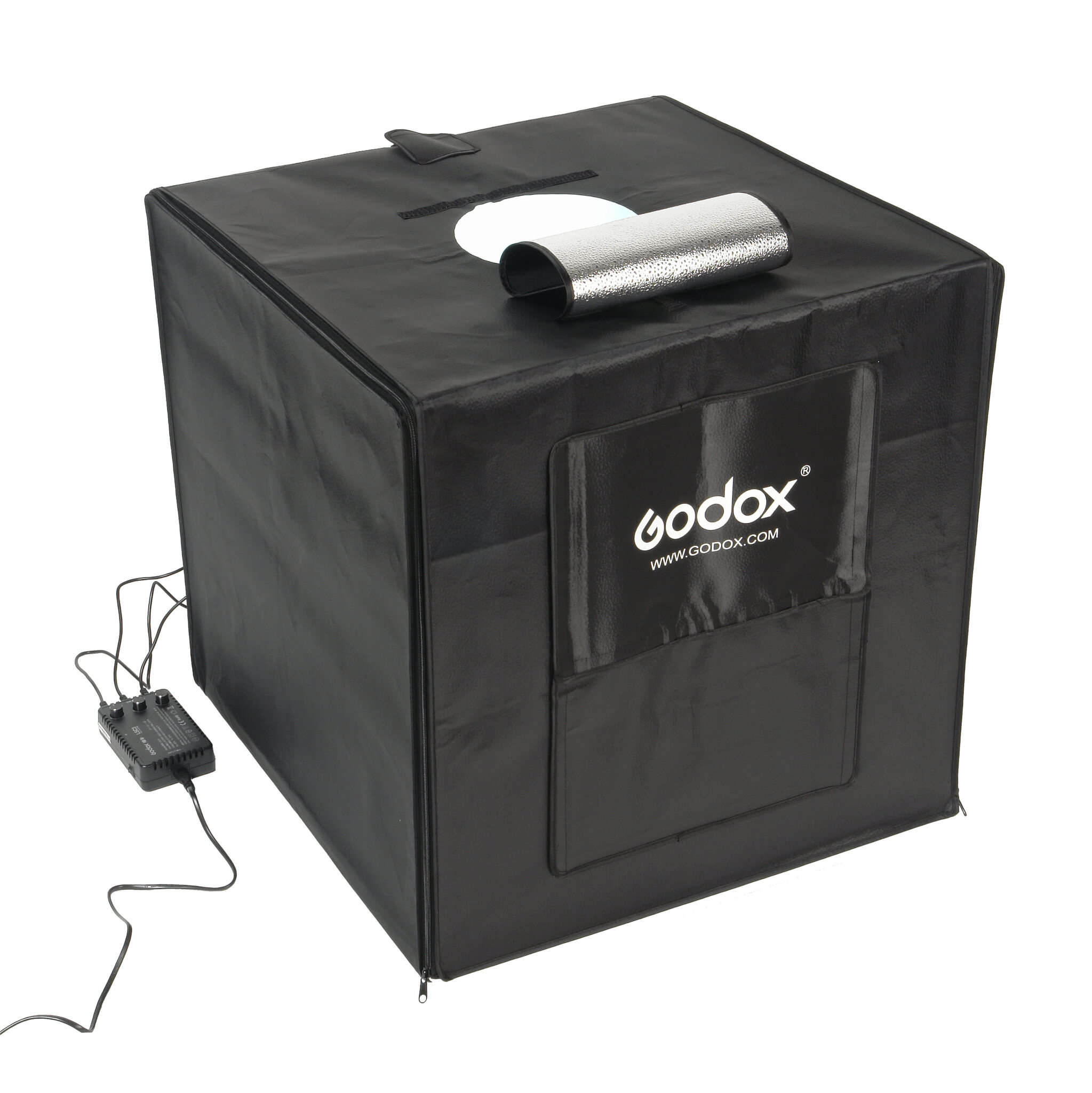 Godox LST60 снабжен тремя светодиодными панелями. Каждая панель оснащена 56 мощными светодиодами. Сумарной мощностью 60 Вт. Интенсивность свечения каждой панели плавно регулируется на блоке питания. Цветовая температура 5600+/-200K. Куб имеет 2 пластиковых фона в комплекте: белый, черный. Размеры куба 60х60х60 см.