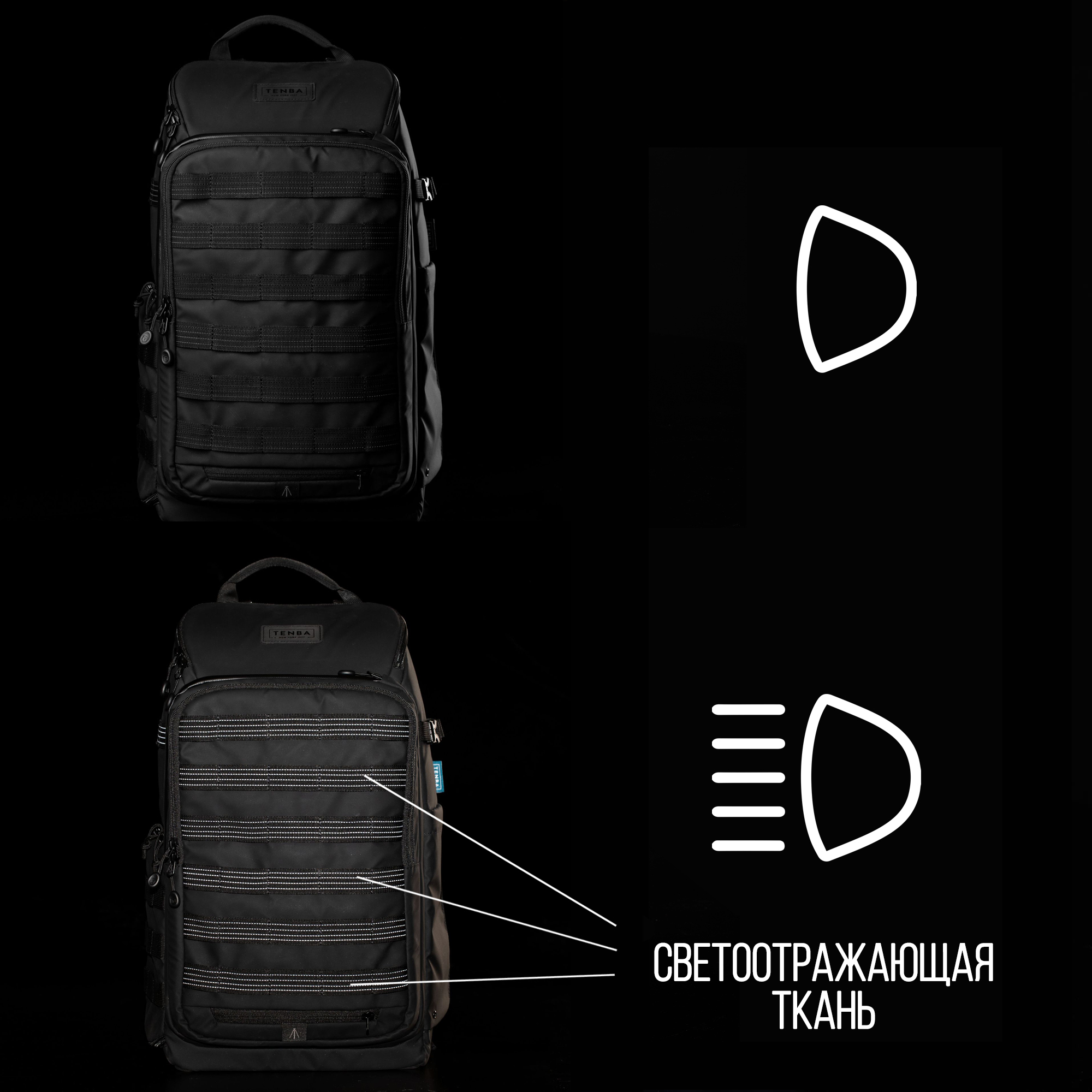 Tenba Axis v2 Tactical Backpack 24 Black - рюкзак для размещения 1-2 беззеркальных, зеркальных или кинокамер с 6-8 объективами до 500 мм, ноутбука до 16 дюймов и штатива. Также подходит DJI Mavic 3 и других аналогичных по размеру дронов и личных вещей.