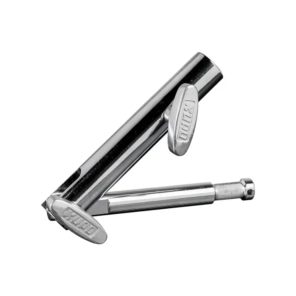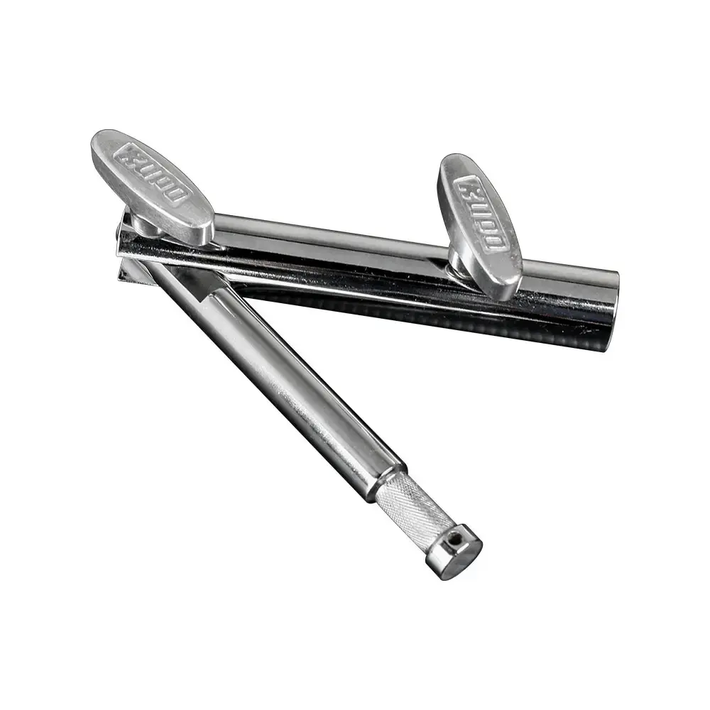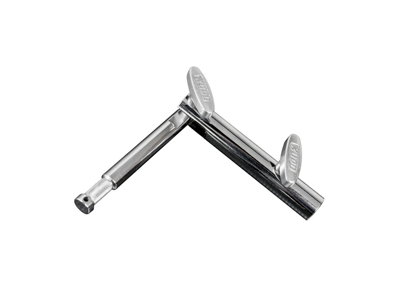 Адаптер оснащен гнездом и штифтом Baby 16 мм, изготовлен из хромированной стали. Фиксатор с эргономичной рукояткой предотвращает самопроизвольное проворачивание оборудования. Вес конструкции — 620 г.