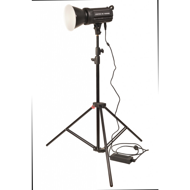 GRIFON LED 100W HC-1000SB представляет собой светодиодный осветительный прибор, предназначенный для использования в условиях профессиональной студийной съемки. Его функциональность ориентирована на создание основного, заполняющего или контрового света. Прибор снабжен COB-матрицей, которая обеспечивает световой поток 10000 люмен. Цветовая температура является фиксированной - 5600К, при использовании фильтра – 3200К. Данный параметр обеспечивает соответствие стандартам дневного или искусственного освещения, что позволяет согласовать свет прибора с другими источниками в студии или условиями естественного освещения.