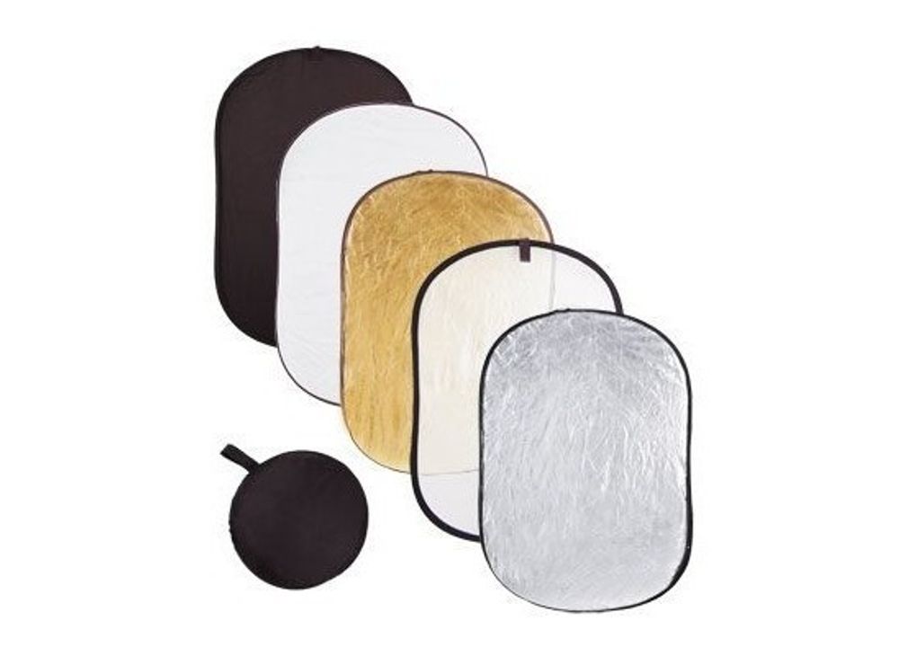 FST RD051 - светоотражатель 5 в 1. Модель имеет размеры 100х150 см. RD051 может использоваться в пяти вариантах: белый, черный, серебристый, золотой и на просвет.