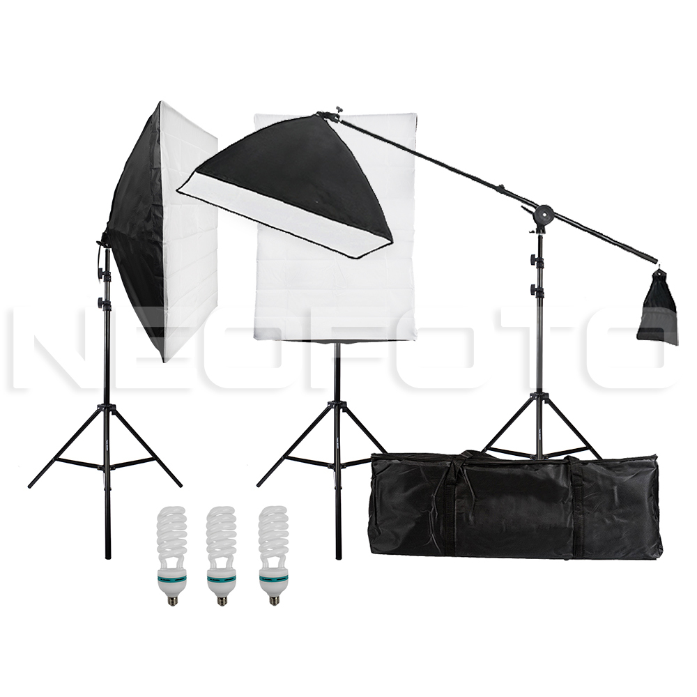 Falcon Eyes KeyLight 3150 SB5070 KIT - комплект постоянного света на базе трех софтбоксов и люминесцентных ламп. Комплект подойдет для обеспечения освещения как для фото- так и для видеосъемки. Сфера применения комплекта софтбоксов широка: начиная от предметной фотосъемки, домашних фотосессий и до съемки видеоблогов, вебинаров и др. Лампы мощностью 150 Вт с цоколем E27 имеют температуру 5500К. Питание от бытовой сети 220 вольт. Софтбоксы размером 50х70 см обеспечивают мягкий рассеянный свет без бликов и жестких теней. На одну из стоек устанавливается журавль, для освещения сверху. Стойки высотой 2 метра.
