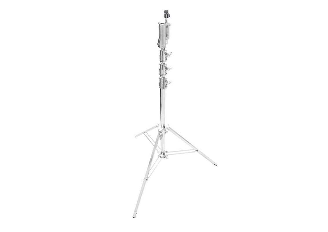 Хромированная стальная стойка KUPO 543MH Master Cine Stand представляет собой профессиональное решение для работы с тяжелым съемочным оборудованием. С максимальной рабочей высотой 4.45 метра и грузоподъемностью 40 кг, эта модель идеально подходит для сложных съемочных задач.
