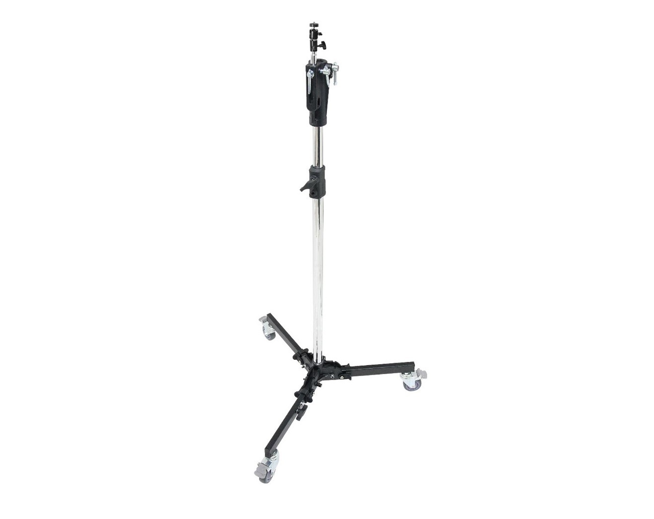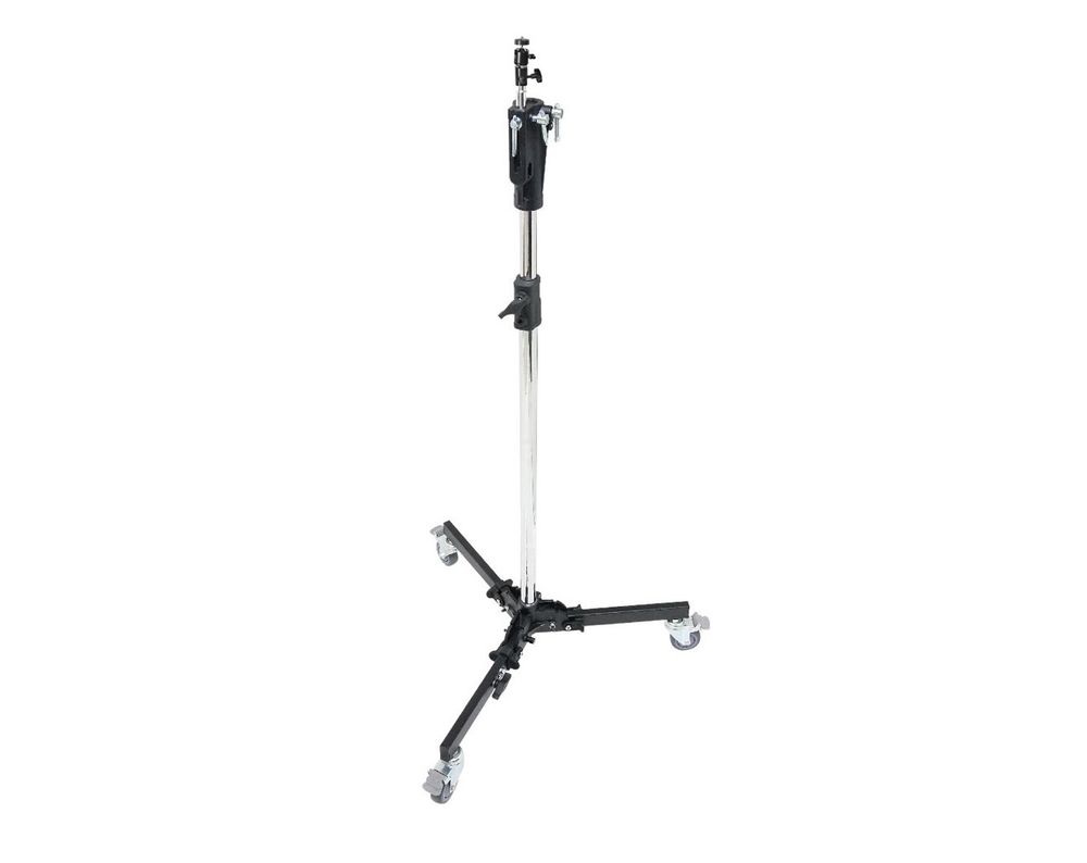 KUPO 380MH STEEL STUDIO STAND — мобильная стойка на колесах для профессиональной фото- и видеосъемки. Стальная конструкция с хромированной колонной выдерживает оборудование весом до 20 кг при максимальной высоте 203 см.
