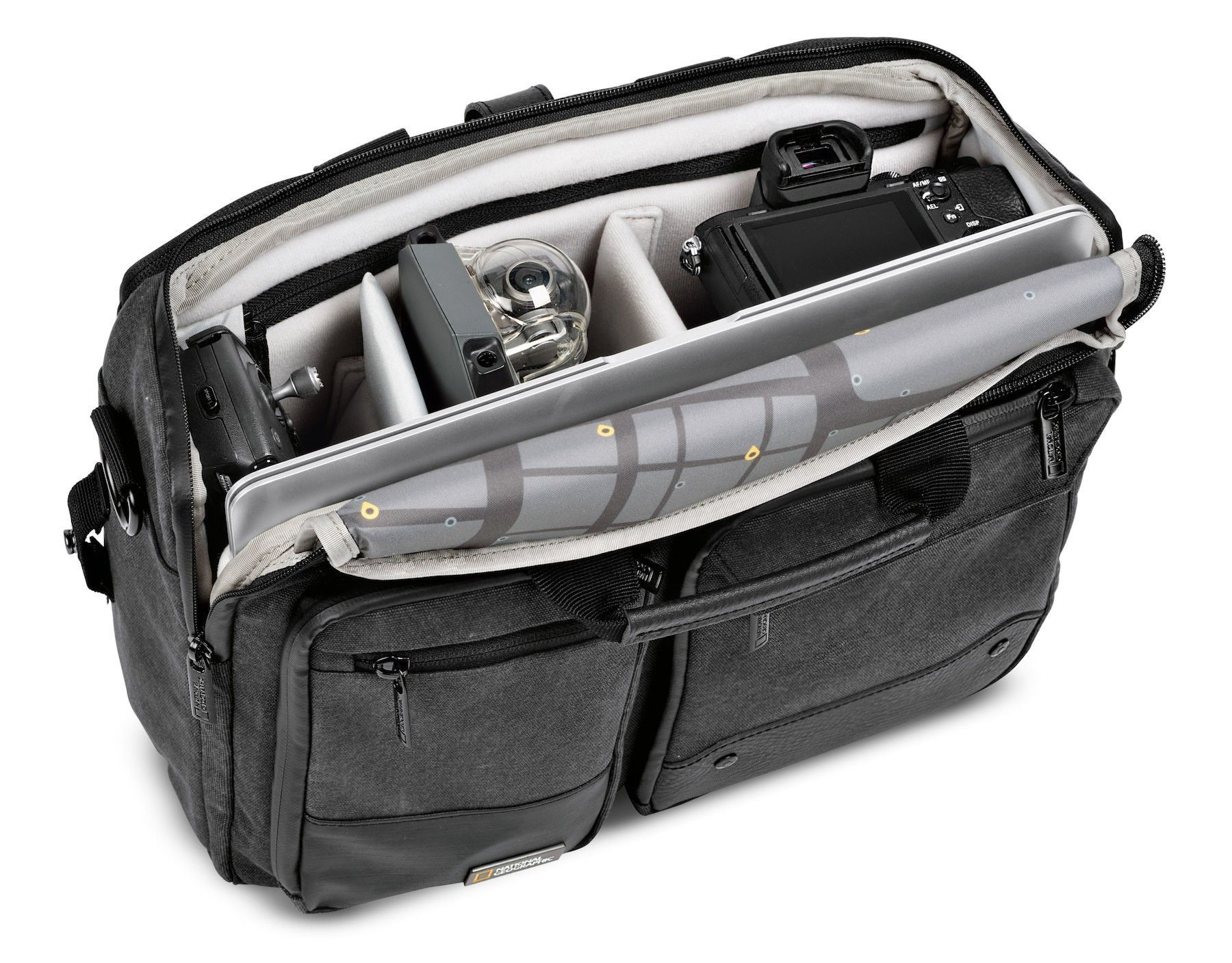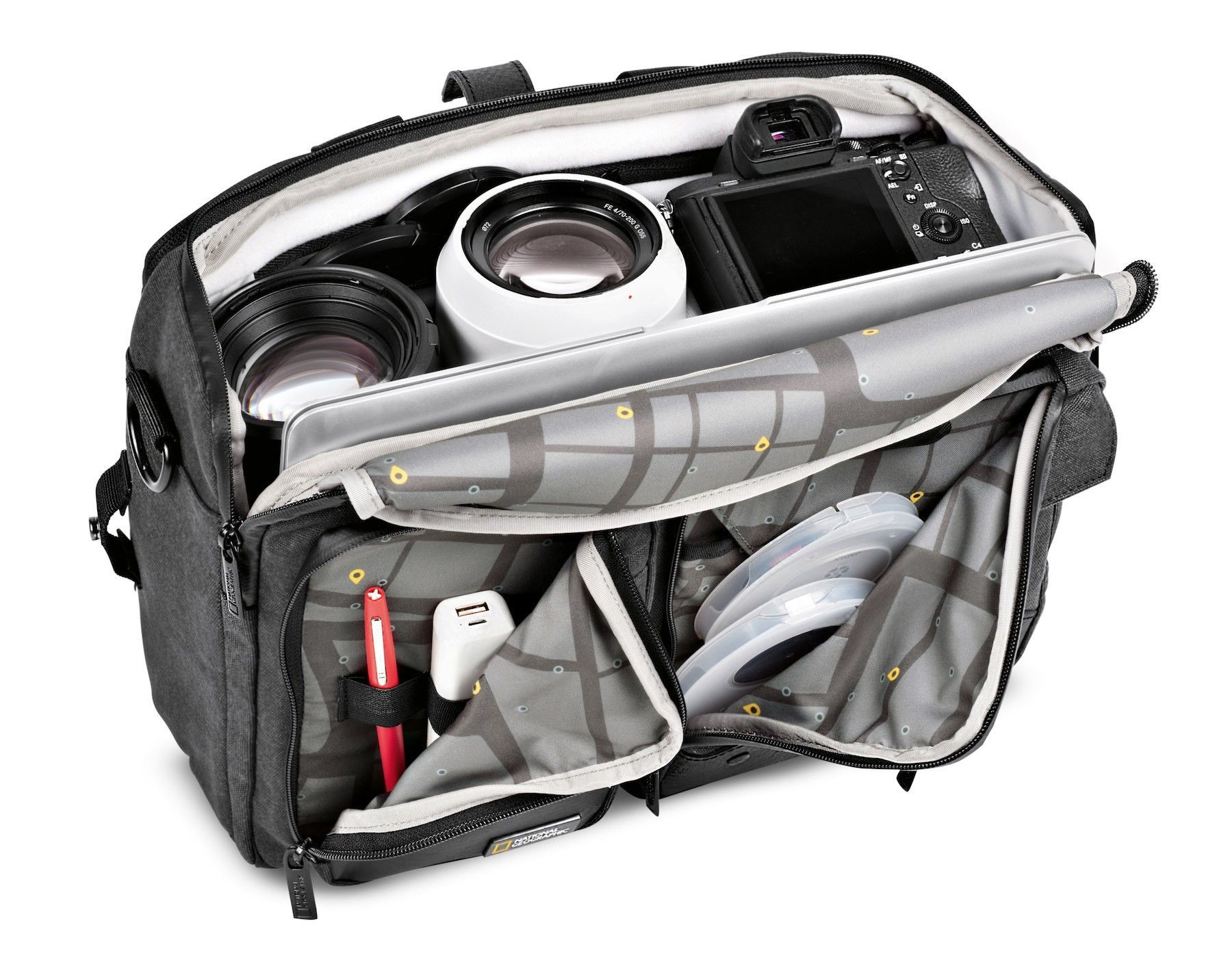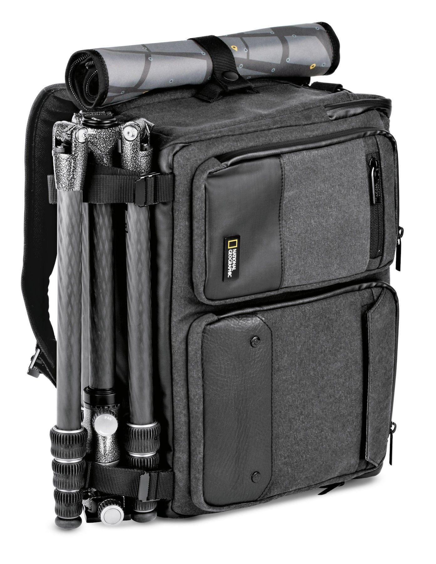 National Geographic NG W5310 Walkabout - универсальная фотосумка-фоторюкзак 3 в 1 для размещения зеркальной камеры с одетым объективом (до 70-200) и дополнительных объективов. В сумке предусмотрено отделение для ноутбука до 13". Водоотталкивающая ткань сочетается со вставками из натуральной кожи. Внутренние разделители - съемные, что позволяет использовать сумку при необходимости как повседневную. Фотосумка снабжена функцией защиты камеры от ударов CPS. National Geographic NG W5310 Walkabout снабжена внешним боковым креплением для штатива.