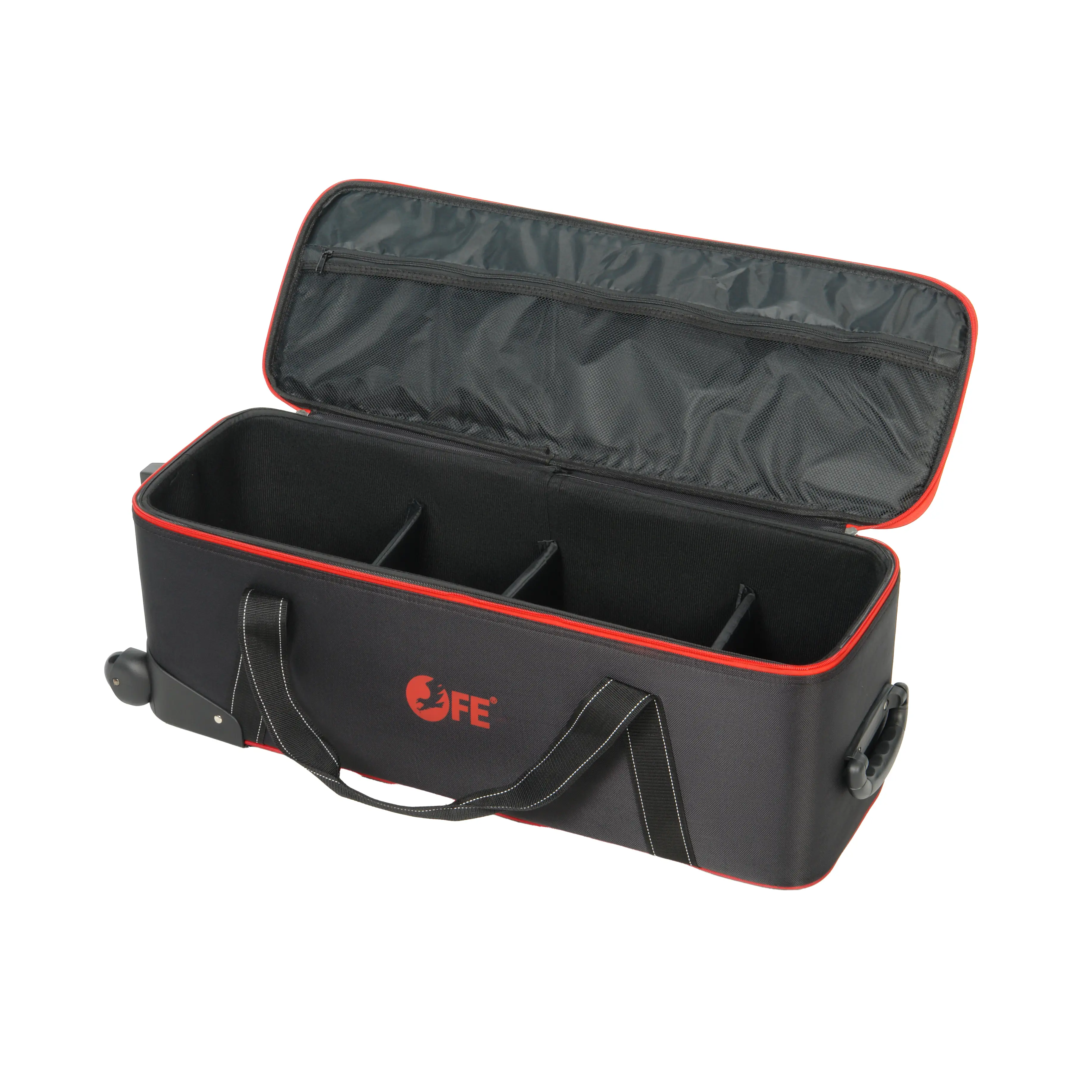 Сумка Falcon Eyes CC-15 на колесах представляет собой компактное и надежное решение для транспортировки и хранения студийного оборудования. Эта модель, имея уменьшенные габариты по сравнению со старшими моделями, предназначена для мобильных съемочных задач, где необходимо перевозить ограниченный набор техники: осветительные приборы, фото- и видеокамеры с аксессуарами.