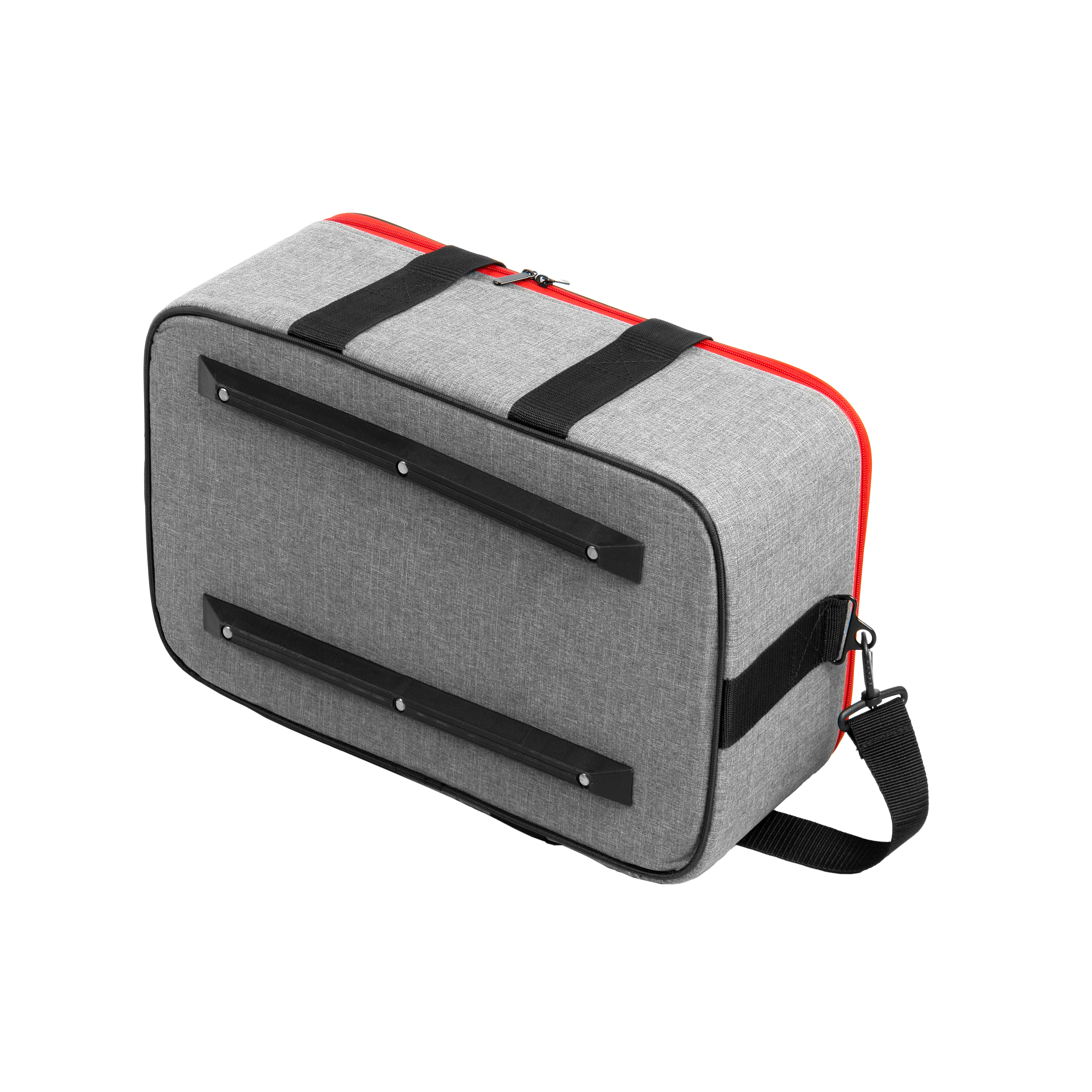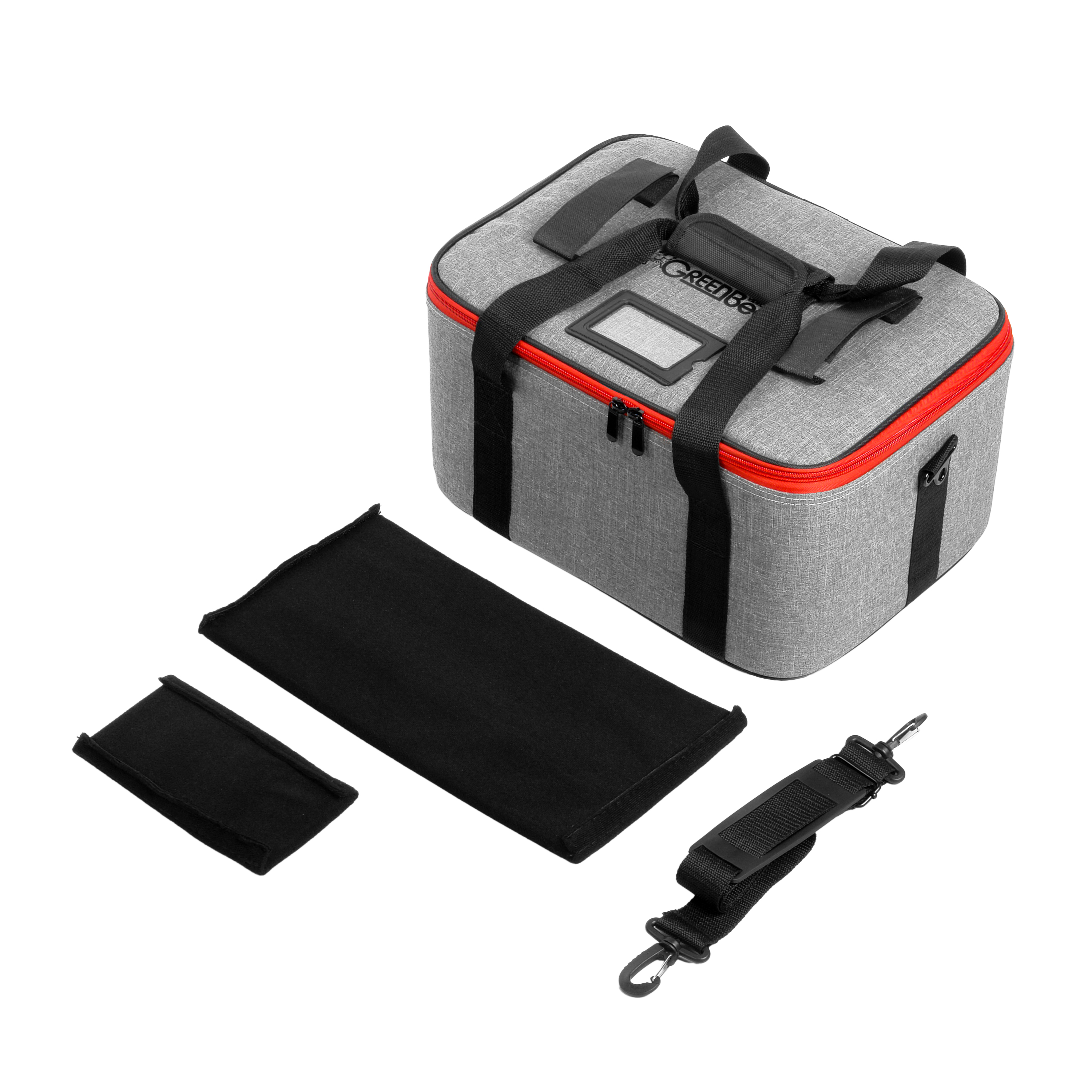 Для переноски сумка оснащена двумя текстильными ручками. Также в комплект входит съемный наплечный ремень, длина которого регулируется. На дне установлены пластиковые ножки, которые защищают материал от загрязнений при установке на поверхность.