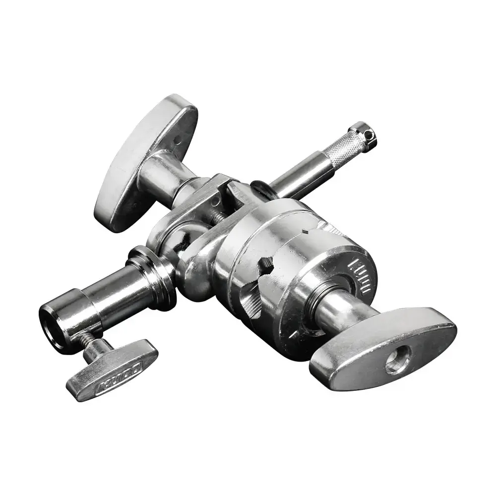 Головка KUPO KCP-230 GRIP HEAD — универсальная крепежная система с поворотным штифтом Baby 5/8" (16 мм). Оснащена штифтом Junior 28 мм с гнездом Baby 16 мм для совместимости с различными типами стоек. Вращающийся зажимной диск и четыре V-образные губки обеспечивают надежную фиксацию штанг диаметром 1/4", 3/8", 1/2" и 5/8".
