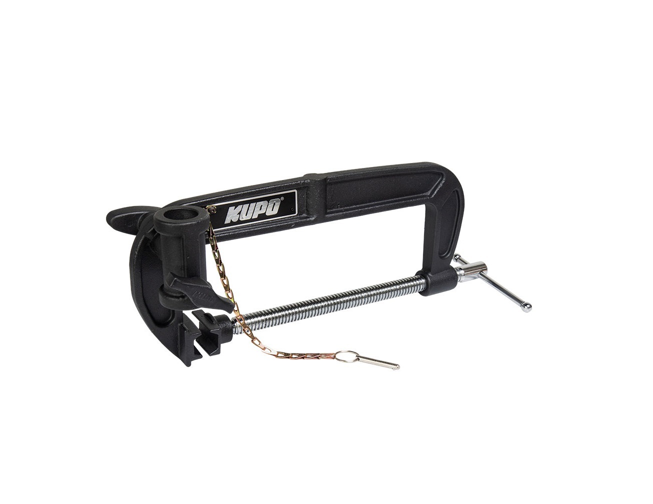 Зажим KUPO KCP-129 HEAVY DUTY C-CLAMP — профессиональная струбцина для монтажа осветительного оборудования. Кованая стальная конструкция длиной 10" (25.4 см) с порошковым покрытием оснащена поворотным гнездом Junior 28 мм.